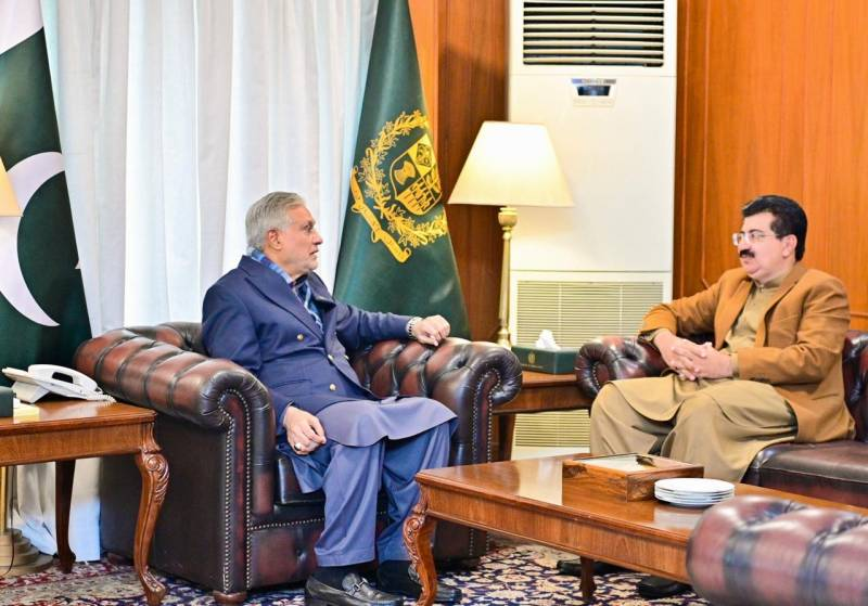 Deputy Prime Minister and Foreign Minister Ishaq Dar met with former Senate Chairman Sadiq Sanjrani on Monday to discuss ongoing development initiatives in Balochistan, according to a spokesperson from the Deputy Prime Minister’s Office.