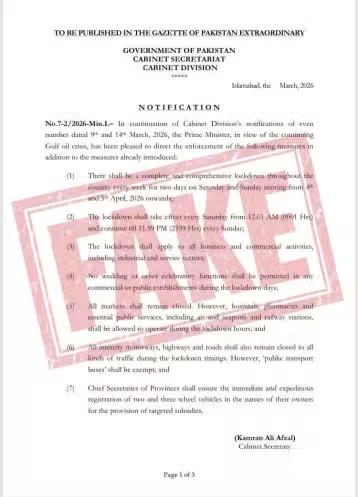 At present, normal operations continue across the country, with no restrictions announced on movement, commercial activity, or office functioning. Authorities reiterated that Pakistan has not declared any form of smart lockdown, and any claims suggesting otherwise should be treated as misinformation.